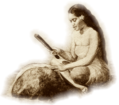 Dans l’ensemble de la Polynésie, la fabrication du tapa était un travail typiquement féminin, même si les hommes n’étaient pas exclus du processus de production : il leur revenait de planter des jeunes pousses d’arbres à pain (uru) ou des boutures de mûrier (aute; à ne pas confondre avec l’hibiscus ‘aute) et d’en éliminer les bourgeons naissants. Ainsi, les baliveaux parfaitement lisses permettaient d’obtenir une étoffe homogène. Après la séparation de l’écorce du bois, les femmes prenaient le relais des hommes. Les écorces étaient mises à tremper deux ou trois jours dans un point d’eau douce. Elles étaient ensuite grattées à l’aide d’une coquille pour éliminer leur partie externe ; ne demeurait alors que le «liber», la partie fibreuse de l’écorce végétale. On roulait ensuite les bandes de «liber» avec des feuilles de bananier. Après un à trois jours de repos les fibres étaient battues pour être agglutinées entre elles. La finesse du tapa dépendait de la qualité de cette opération effectuée avec un battoir spécifique en bois de fer (‘aito). Après le battage, les pièces étaient maintenues étirées par des pierres. Elles devaient sécher à l’ombre avant que le soleil ne leur donne leur consistance et leur couleur définitives, spécifiques à chaque espèce d’arbre utilisé. Le mûrier (aute) est connu pour donner des étoffes fines, blanches; plus rugueuses et beiges sont celles de l’arbre à pain (‘uru); épaisses et de couleur brun-rouge sont celles du banian (‘ora). Si le tapa demeurait souvent à l’état naturel, les pièces les plus réussies pouvaient être colorées ou décorées en jaune ou en rouge. Elles étaient utilisées pour confectionner des vêtements : tīputa -cape-, tīhere -pagne-, maro -ceinture-. Elles étaient fréquemment offertes cérémoniellement ou, plus ordinairement, échangées contre d’autres objets.